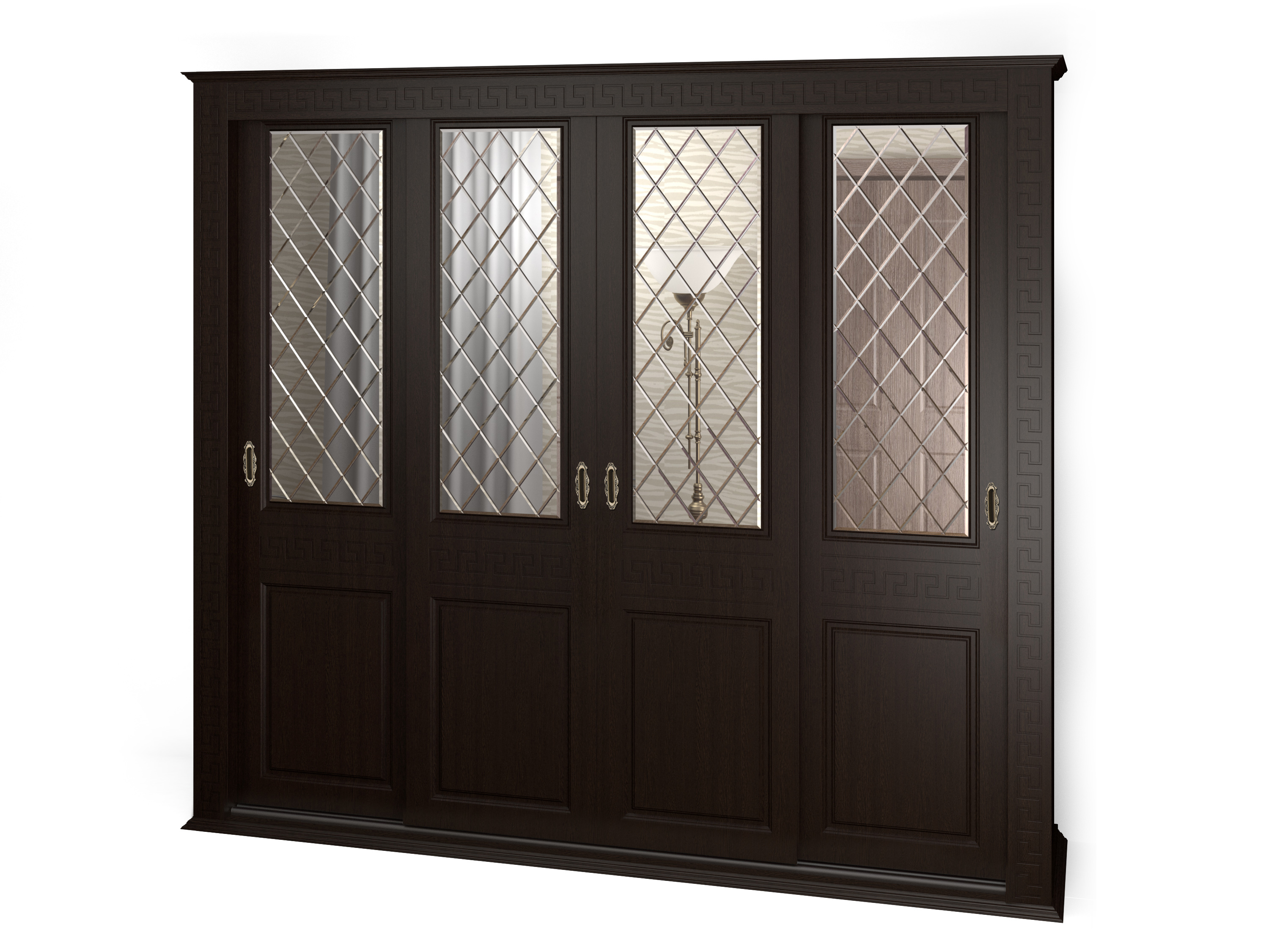 Шкаф купе 4-х дверный "Греция", глухие фасады + зеркало гравировка