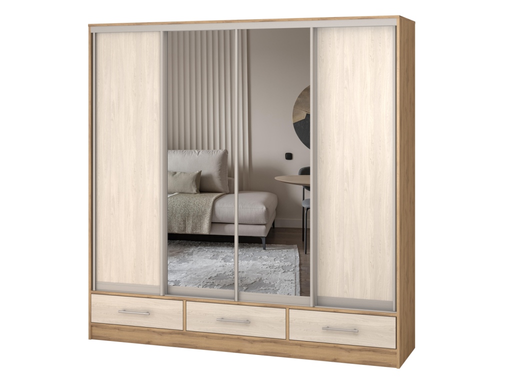 Шкаф купе 4-х дверный "Версаль" 3 ящика/ЛДСП/2 зеркала