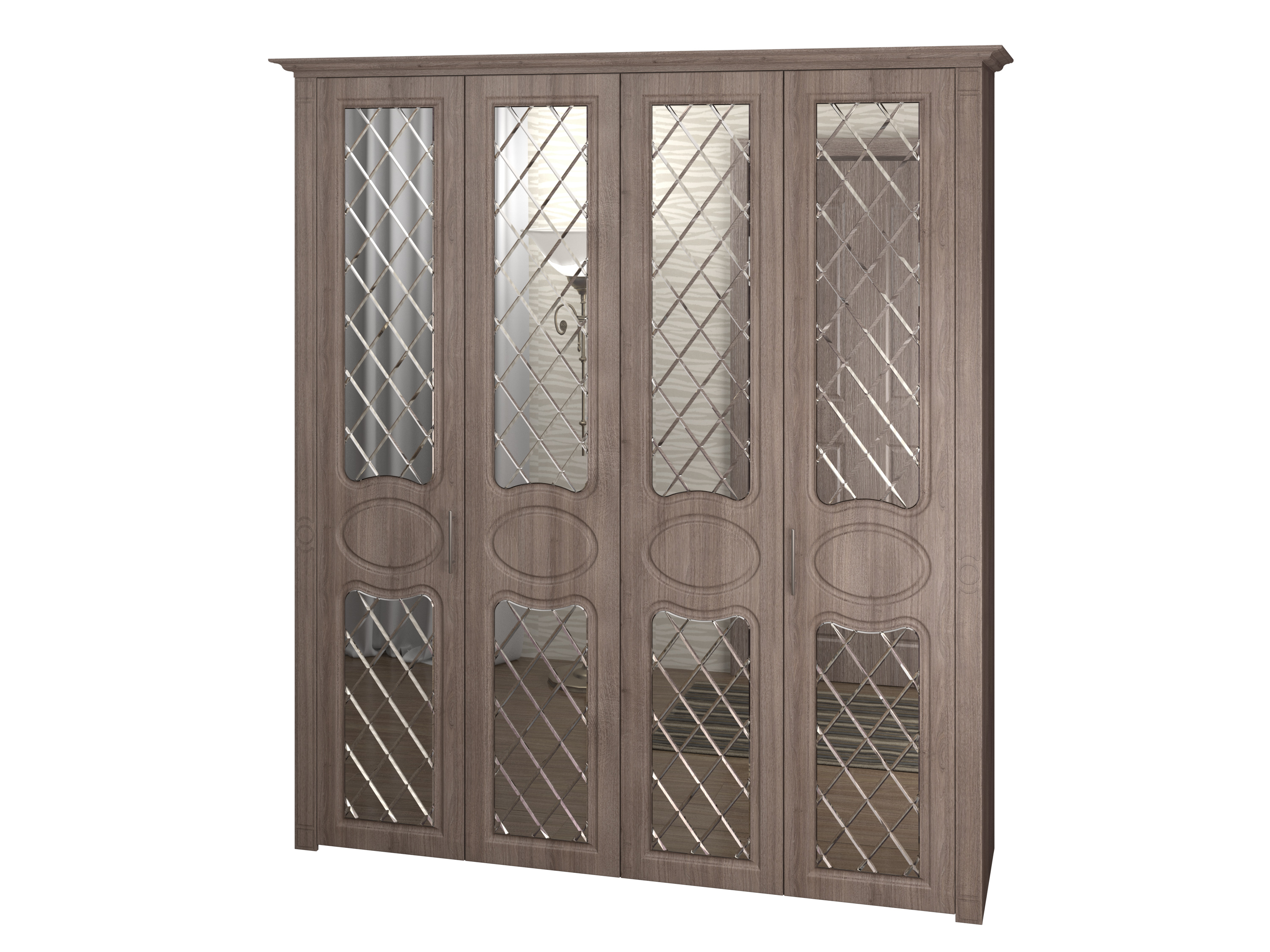 Шкаф 4-х дверный "Дегар Люкс" складные фасады с зеркалом гравировка
